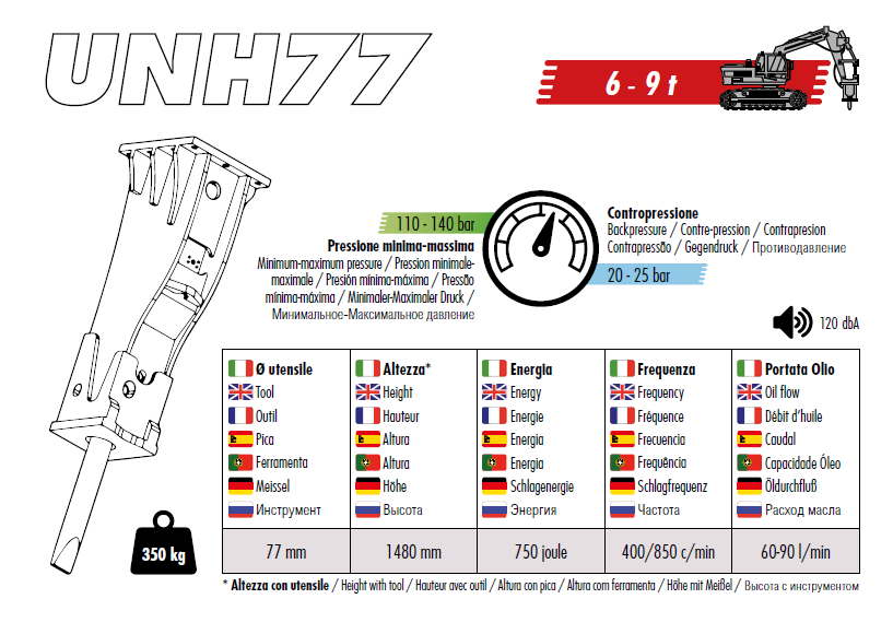 Hidraulični čekić za bagere od 6 do 9 tona UNH77 težine 350kg